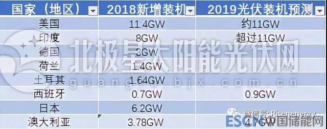 2018主要海外市場(chǎng)裝機(jī)量及2019年裝機(jī)預(yù)測(cè)