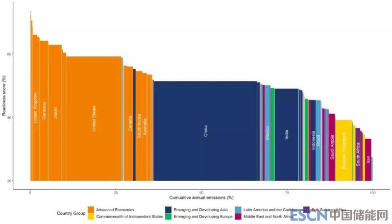報(bào)告發(fā)現(xiàn),小型經(jīng)濟(jì)體在就緒度方面的得分一般更高,英國是在這項(xiàng)次級(jí)指數(shù)上排名前十的唯一一個(gè)七國集團(tuán)成員國。除了新加坡外,排名前十的經(jīng)濟(jì)體全部位于西歐。若要建立面向未來的全球能源體系,最大的挑戰(zhàn)在于世界大型經(jīng)濟(jì)體對此準(zhǔn)備不充分:比如,在就緒度方面排名前十的國家,其年度排放量僅占全球排放總量的2.6%。