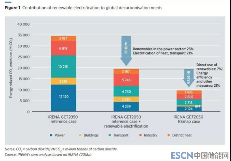 中國(guó)儲(chǔ)能網(wǎng)訊:根據(jù)國(guó)際可再生能源署(IRENA)的2050年全球能源轉(zhuǎn)型路線圖(GET2050)報(bào)告,電力在全球最終能源中的比例可能會(huì)從現(xiàn)在的20%增加到2050年的近45%。同時(shí),可再生電源在全球發(fā)電總量將從今天的26%攀升至2050年的85%,其中高達(dá)60%來(lái)自太陽(yáng)能和風(fēng)能等間歇性電源。