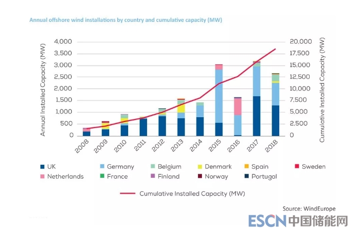 中國儲能網(wǎng)訊:根據(jù)歐洲風(fēng)能交易機構(gòu)WindEurope公布的新數(shù)據(jù),歐洲在2018年新增海上風(fēng)電總裝機容量為2.6吉瓦(GW),使該地區(qū)的總裝機容量達(dá)到18.5吉瓦。