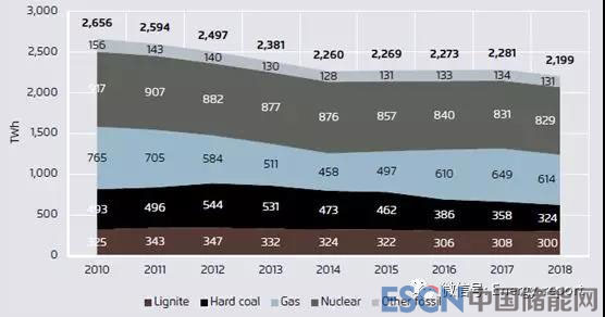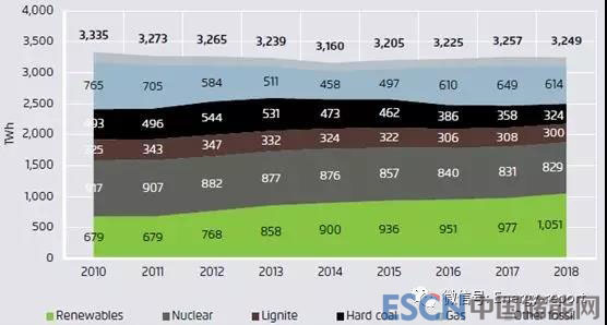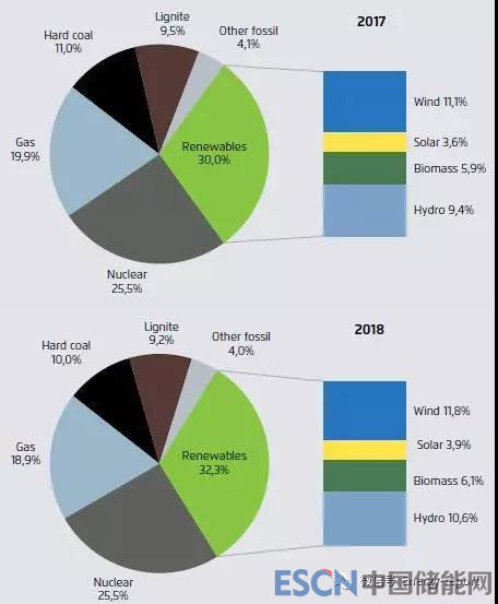 2017年和2018年歐洲發(fā)電結(jié)構(gòu)
