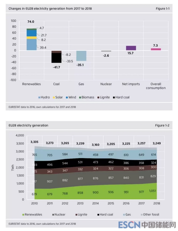TWh,核電基本持平(微降2.6 TWh)。煤電、氣電的下降完全由可再生能源發(fā)電補(bǔ)償(增長74 TWh)。