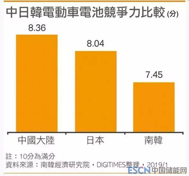 根據(jù)韓媒ET News的報(bào)導(dǎo),有鑒于韓國(guó)電動(dòng)汽車(chē)電池市占率面臨衰退危機(jī),韓國(guó)各界正積極尋求對(duì)策。韓國(guó)經(jīng)濟(jì)研究院稍早發(fā)布最新調(diào)查報(bào)告,指出全球80%電池市場(chǎng)成由中日韓三國(guó)把持,如果將競(jìng)爭(zhēng)力設(shè)定10分為滿(mǎn)分,針對(duì)產(chǎn)學(xué)研專(zhuān)家進(jìn)行中日韓三國(guó)的動(dòng)力電池競(jìng)爭(zhēng)力意見(jiàn)調(diào)查,結(jié)果發(fā)現(xiàn)中國(guó)得分最高(8.36分),其次是日本(8.04分),韓國(guó)則是敬陪末座(7.45分)。