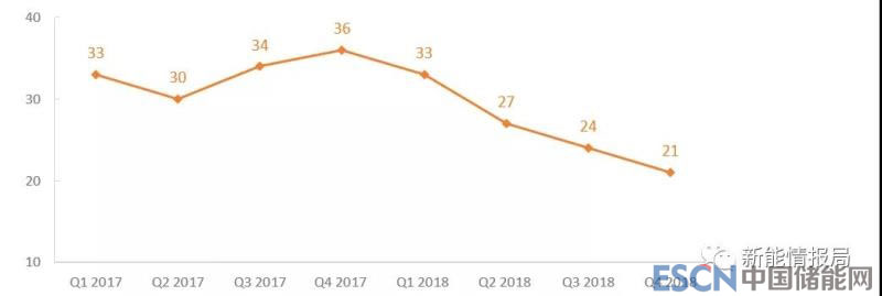 光伏組件價(jià)格在2018年出現(xiàn)了大幅下跌,從年初到0.33美元/瓦降到了年底的0.21美元/瓦。