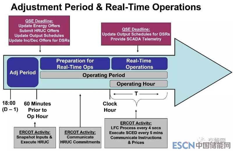 調(diào)整時(shí)段(Adjustment Period)指從日前18點(diǎn)到實(shí)時(shí)運(yùn)行時(shí)段的開(kāi)始(即運(yùn)行小時(shí)的前一個(gè)小時(shí))。在調(diào)整時(shí)段,QSE可以更新售電報(bào)價(jià)和購(gòu)電報(bào)價(jià),更新電源當(dāng)前運(yùn)行計(jì)劃COP,更新發(fā)電計(jì)劃等。ERCOT在調(diào)整時(shí)段執(zhí)行時(shí)前可靠性機(jī)組組合(HRUC)計(jì)算,并發(fā)布結(jié)果。