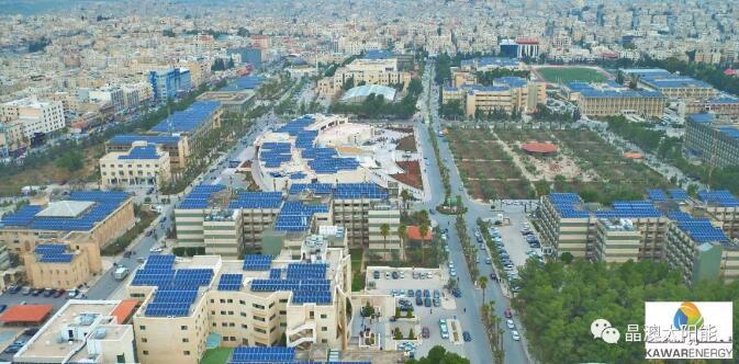 2018年4月,晶澳太陽(yáng)能宣布為雅爾穆克大學(xué)3MW項(xiàng)目供應(yīng)全部光伏組件,此項(xiàng)目是約旦迄今為止最大的屋頂光伏項(xiàng)目。