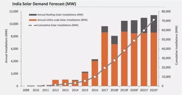 Mercom預(yù)計(jì)今年將有8到9GW的新增裝機(jī)。高于 Bridge to India預(yù)測(cè)的6GW,低于IHS Markit預(yù)期的11GW。