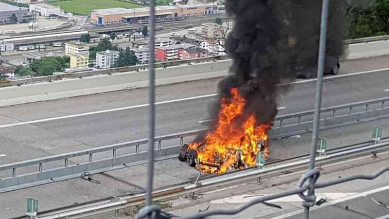 中國儲(chǔ)能網(wǎng)訊:據(jù)【觀察者汽車頻道報(bào)道】當(dāng)?shù)貢r(shí)間5月10日,一名德國司機(jī)在瑞士南部提契諾州的高速公路上駕駛一輛特斯拉Model S行駛時(shí)撞上隔離帶,車輛發(fā)生翻轉(zhuǎn)并迅速起火,司機(jī)被困在車內(nèi)燒死。這是一周內(nèi)特斯拉遭遇的第二起撞擊后自燃事件。