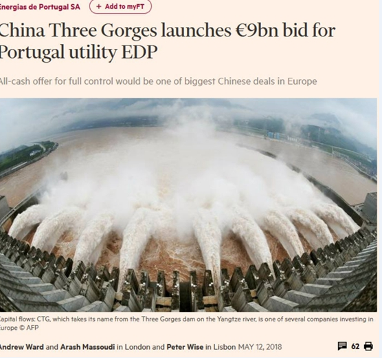 中國儲能網(wǎng)訊:最近兩天,英國《金融時報》、路透社接連報道中國三峽集團向葡萄牙電力集團(EDP)發(fā)出收購要約一事,關(guān)注中國能源企業(yè)在歐投資和美國審查壁壘的問題。