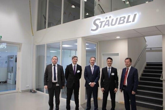 從左到右分別是: Jean-Marc Dalmasso,史陶比爾(法韋熱)業(yè)務(wù)部門副總經(jīng)理;Andrea Barbolini,施耐德電氣解決方案管理、機(jī)器解決方案副總裁;Gerald Vogt,史陶比爾機(jī)器人集團(tuán)部門經(jīng)理;Ali Haj Fraj,施耐德電氣工業(yè)事業(yè)部機(jī)器解決方案全球高級副總裁;Yves Gelon,史陶比爾(法韋熱)機(jī)器人部門經(jīng)理