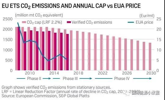 MSR機(jī)制將使得歐洲碳交易市場(chǎng)的排放總量限額(ETS cap)在2020年到2030年之間從18億噸下降到12億噸,相當(dāng)于每年下降2.65%,到2030年可總共減少30億噸的碳排放配額供應(yīng)。