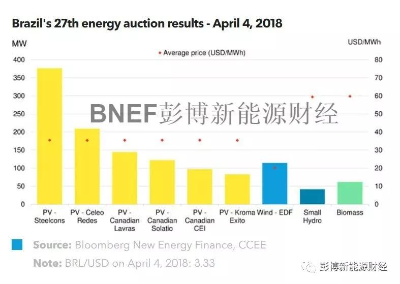 在2017年度的第一次拍賣中,光伏項(xiàng)目以1GW的成交量成為最大贏家,而118雷亞爾/MWh(35美元/MWh)的平均成交價(jià)格,創(chuàng)下該國歷史新低。