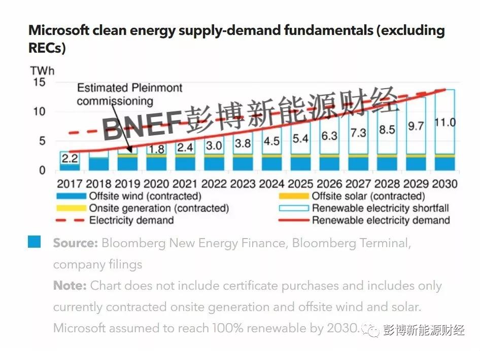 為滿足微軟2020年60%電力供應(yīng)來自可再生能源的目標(biāo),共需要的電力總量