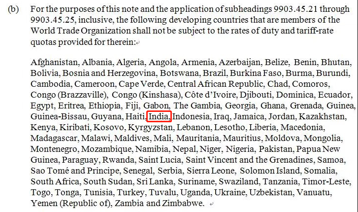 不受貿(mào)易關(guān)稅制裁的國家或地區(qū)