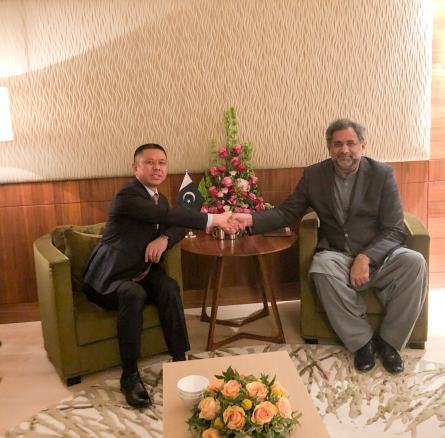 巴基斯坦總理阿巴西與天合光能董事長高紀凡親切握手