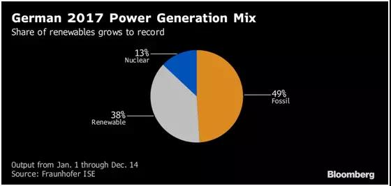 過去20年,德國花費了超過2000億美元來發(fā)展清潔電力能源,這一巨額投入也收到了回報。2017年,德國可再生能源占比已經達到了38%,燃煤發(fā)電廠降到了49%。