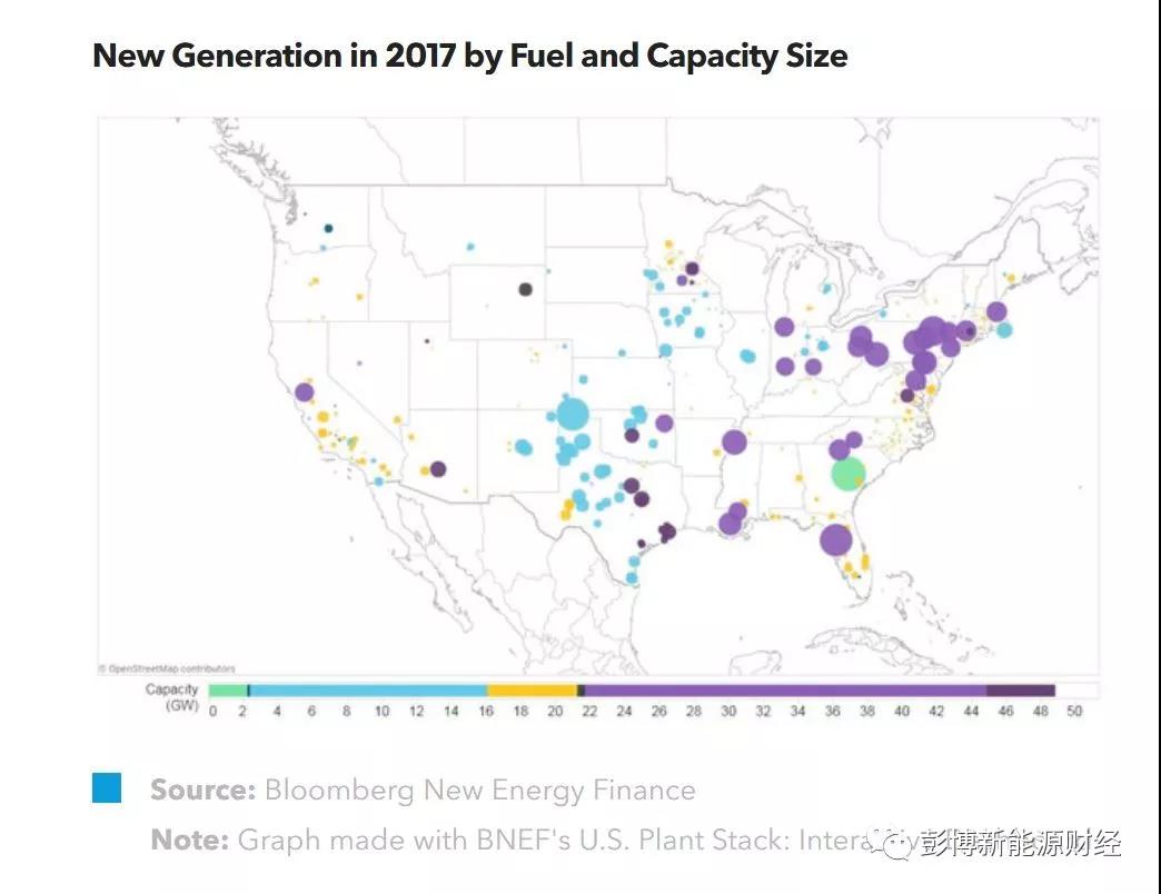 中國儲能網(wǎng)訊:我們使用彭博新能源財經(jīng)的最新“美國電廠堆棧交互工具”(U. S. Plant Stack Interactive Dashboard) ,通過對美國電廠進行分析,強調(diào)出最顯而易見的20大趨勢。我們的“電廠堆棧”內(nèi)包含超過25000個獨立發(fā)電機組、總規(guī)模超過1000GW的額定裝機容量的信息,能夠代表美國絕大多數(shù)電廠的情況。本研究報告特別關(guān)注天然氣發(fā)電在和煤炭及可再生能源發(fā)電的比較中是如何表現(xiàn)的。
