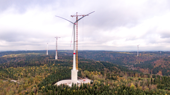 Max B?gl Wind公司的四臺風(fēng)力渦輪機組成了斯圖加特附近蓋爾多爾夫的一個更大規(guī)??稍偕茉春蛢δ茼椖康脑圏c階段。