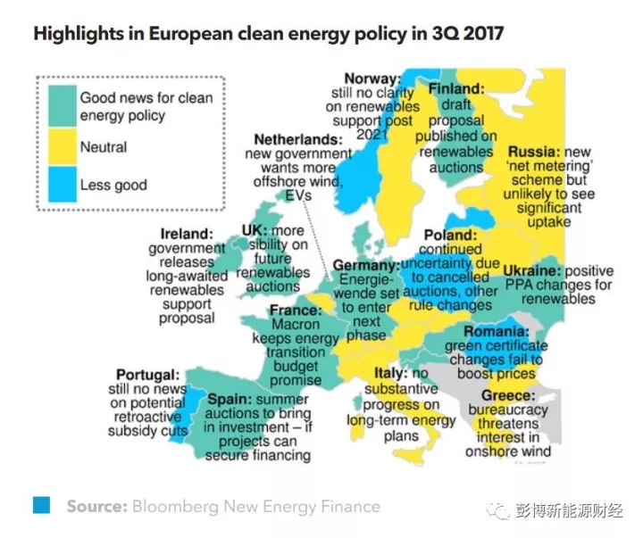 2017年第三季度,歐洲清潔能源投資的年同比增長率