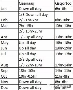 圖2,格陵蘭南北部兩城市日照時長統(tǒng)計