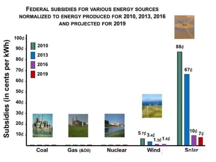值得注意的是,事實上美國聯(lián)邦政府對于煤、天然氣和核電也有少量補貼,大約在0.05-0.2美分/千瓦時。