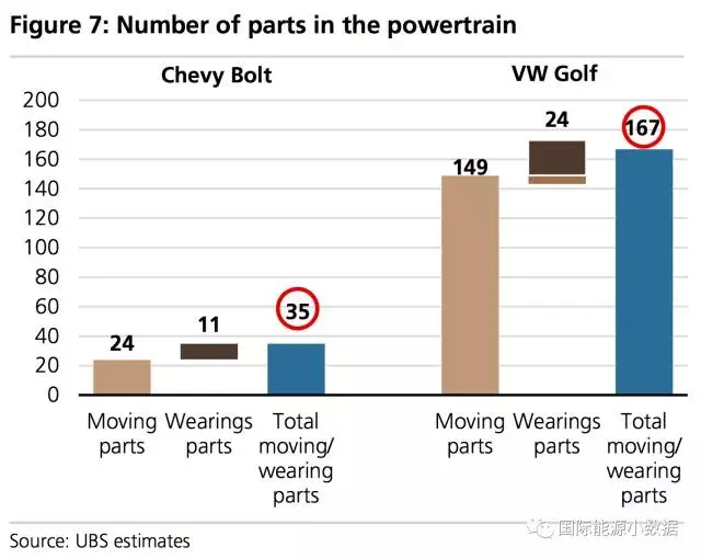 電動(dòng)汽車(chē)內(nèi)部結(jié)構(gòu)簡(jiǎn)單,很少?gòu)?fù)雜的轉(zhuǎn)動(dòng)和易損部件。電動(dòng)汽車(chē)的電池組目前成本達(dá)9000美元,2025年可跌至4000美元。