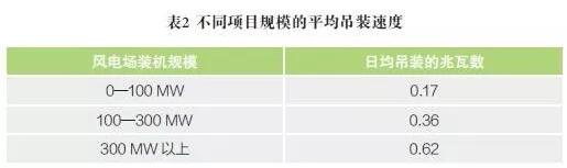 表2 則是根據(jù)項(xiàng)目裝機(jī)規(guī)模對(duì)平均建設(shè)速度進(jìn)行的分類。值得注意的是位于泰晤士河口的倫敦陣列(London Array)項(xiàng)目,其建設(shè)速度達(dá)到驚人的0.92 兆瓦/ 日。