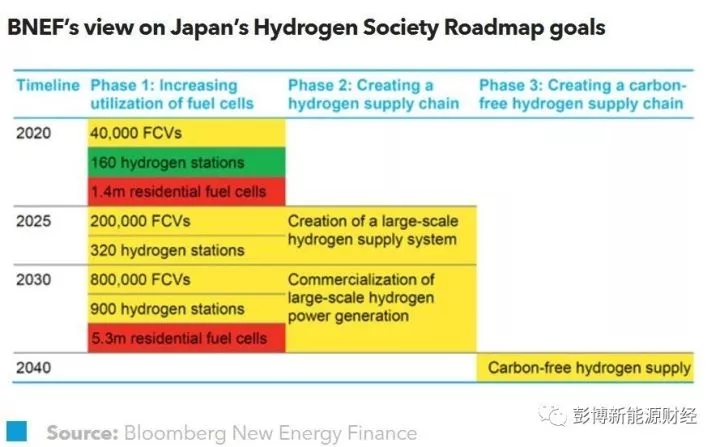 具體來看,日本的“氫氣社會(huì)發(fā)展路線圖”共有三個(gè)主要發(fā)展方向,分別為居民住宅燃料電池;燃料電池汽車及相應(yīng)加氫基礎(chǔ)設(shè)施;以及無碳化全球氫能供應(yīng)鏈。在“線路圖”中,日本政府已經(jīng)為該國住宅燃料電池和燃料電池汽車的發(fā)展制定了具體的2020、2025 和 2030 年分階段目標(biāo);并為氫能供應(yīng)鏈的建設(shè)制定了2040 年的定性目標(biāo)。
