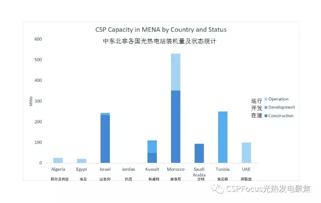 中國儲能網(wǎng)訊:作為全球光熱發(fā)電重要市場之一,中東北非(MENA)地區(qū)多個國家均積極參與到光熱電站的開發(fā)和建設當中。這些國家包括摩洛哥、阿聯(lián)酋、沙特、突尼斯、以色列、科威特、阿爾及利亞、埃及、約旦九國。其中摩洛哥已建成項目兩個、在建項目三個,共計541MW位位居總裝機量第一。