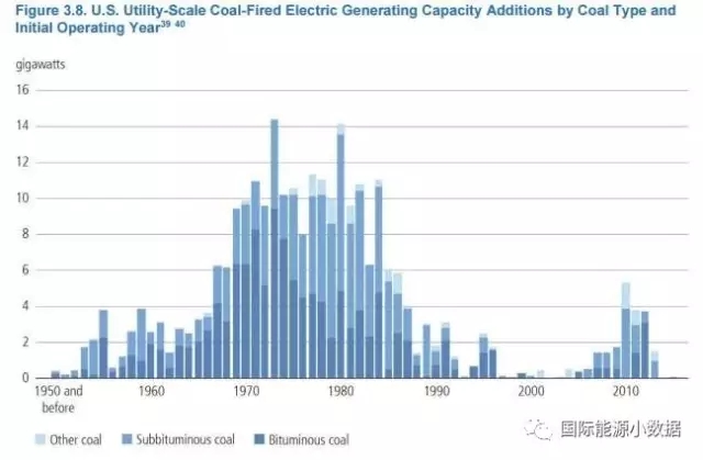 2)電力需求增長停滯也是電廠退役的另外一個重要原因(Another factor contributing to the retirement of power plants is low growth in electricity demand):美國電力需求的年增長率在上世紀(jì)90年代平均為2.5%,但是2000-2008年期間增長率降至1%,而2008年以后電力需求基本持平。而在這一期間,共有390.5吉瓦的新增發(fā)電容量并網(wǎng)使得老舊的煤電成為多余,退役勢在必行。
