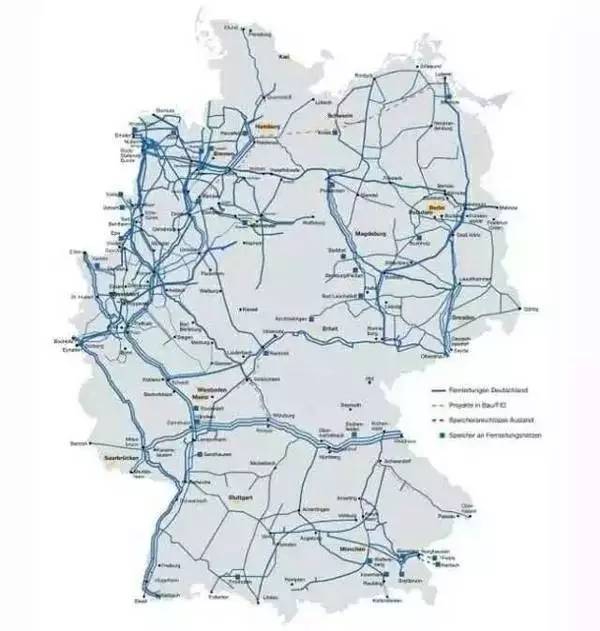 圖2遍及全德國(guó)的天然氣管道是發(fā)展電轉(zhuǎn)氣(P2G)的天然優(yōu)勢(shì)