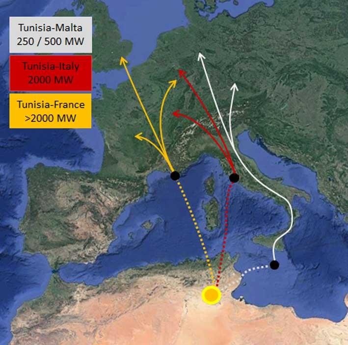 TuNur計(jì)劃通過三條高壓直流海底電纜出口太陽能。第一階段項(xiàng)目將是突尼斯-馬耳他海底電纜。