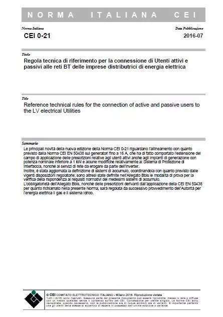 中國(guó)儲(chǔ)能網(wǎng)訊:新版意大利低壓并網(wǎng)標(biāo)準(zhǔn)