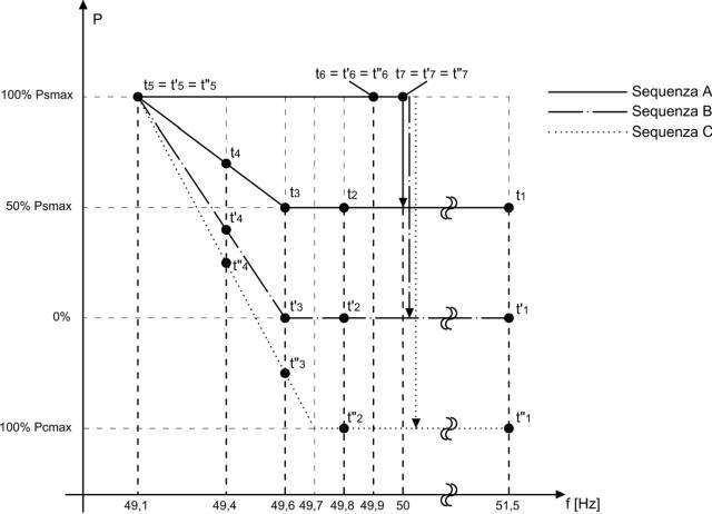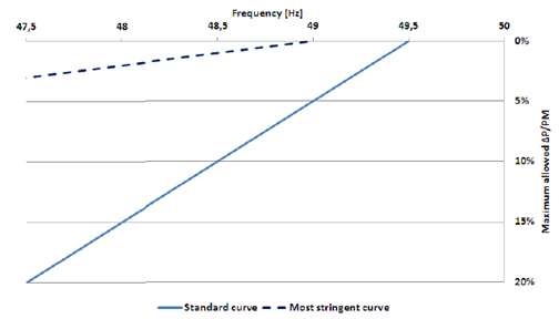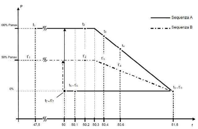 5、B.1.3.2 Active power regulation in coincidence with under-frequency transitory on the transmission grid差異:電網(wǎng)欠頻時(shí)滿足Figure 12bis,類似EN 50438:2013的要求。