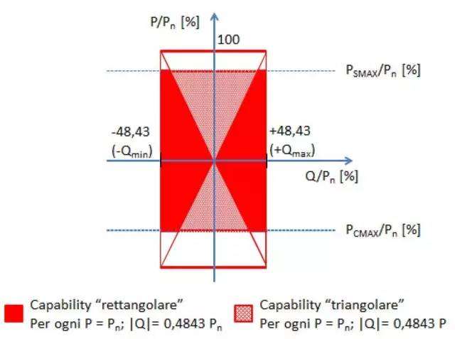 額定發(fā)電功率超過(guò)11.08kW的發(fā)電系統(tǒng)所使用的逆變器,其無(wú)功功率應(yīng)可在-48.43%Pn 和+48.43%Pn之間調(diào)節(jié)。