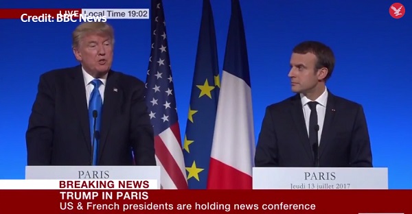 川普在今年6月初履行競(jìng)選承諾,宣布美國(guó)退出巴黎協(xié)定,與國(guó)際主流立場(chǎng)背道而馳。馬克宏在記者會(huì)中提到,與川普雙方在巴黎協(xié)定議題上意見分歧,但是他尊重川普在能源和環(huán)境政策上的決定,同時(shí)也強(qiáng)調(diào)法國(guó)將堅(jiān)守協(xié)定。不過(guò),川普的態(tài)度似乎有些軟化,“關(guān)于巴黎協(xié)定也許會(huì)有些變動(dòng),我們會(huì)再持續(xù)討論,”他語(yǔ)帶保留地表示,“如果有變動(dòng),那會(huì)是好事;如果沒(méi)有變動(dòng),那也沒(méi)關(guān)系”。這樣的說(shuō)法也給了外界不少想像空間。