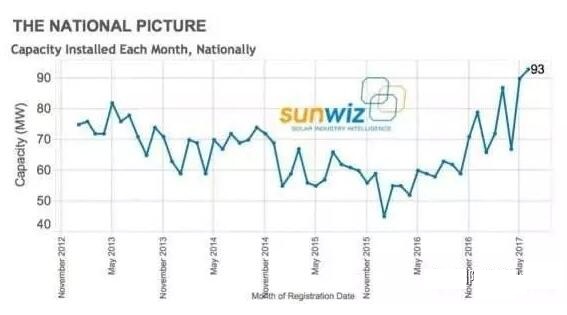 中國儲(chǔ)能網(wǎng)訊:據(jù)Sunwiz公司的數(shù)據(jù),2017年6月份澳大利亞屋頂光伏新增裝機(jī)達(dá)到93兆瓦,其中工商企業(yè)的屋頂光伏占33%。今年前6個(gè)月,澳大利亞屋頂光伏累計(jì)裝機(jī)達(dá)到創(chuàng)紀(jì)錄的475兆瓦。