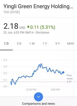 美國(guó)當(dāng)?shù)貢r(shí)間6月22日,英利集團(tuán)(Yingli Green Energy)股票大漲5.31%,晶科能源(Jinko Solar)漲幅達(dá)到4.43%,而來(lái)自浙江的昱輝陽(yáng)光集團(tuán)(Rene Sola)也上漲了3.7%。