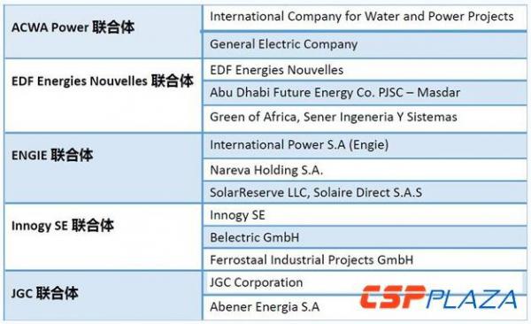 圖:已取得預(yù)審資格的5家聯(lián)合體名單
