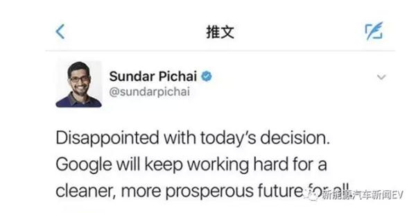 谷歌CEO桑達(dá)爾·皮查伊:“對(duì)今天的決定感到失望,谷歌會(huì)為繼續(xù)努力為大家創(chuàng)造清潔繁榮的未來(lái)。”
