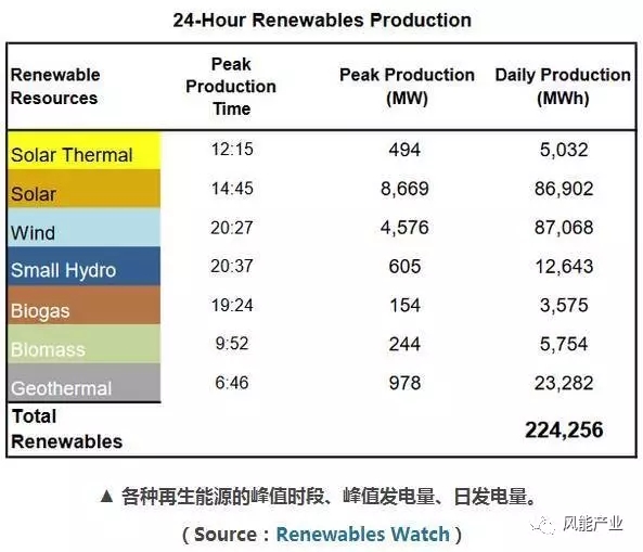 在各種再生能源中,峰值發(fā)電量以太陽(yáng)能居冠,達(dá)8,669百萬(wàn)瓦,風(fēng)力發(fā)電則以4,576百萬(wàn)瓦次之。在日發(fā)電量方面,風(fēng)力發(fā)電可產(chǎn)出87,068兆瓦/時(shí)的電量,而太陽(yáng)能發(fā)電則為86,902兆瓦/時(shí)。