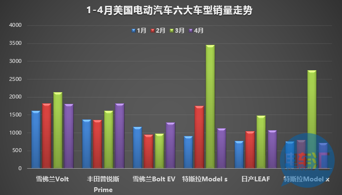 雪佛蘭Volt:在經(jīng)過第一季度良好的銷量勢(shì)頭后(一月份銷量為1611輛,二月份為1830輛,三月份銷量增加到2132輛),四月份銷量改變了今年的銷量趨勢(shì):略微有所下降,銷量為1807輛。盡管相比于一年前銷量下降了9%,但其整體銷量仍然超過了特斯拉Model S,回到美國(guó)銷量榜首。整體而言,2017年雪佛蘭Volt銷量上漲了23.5%。