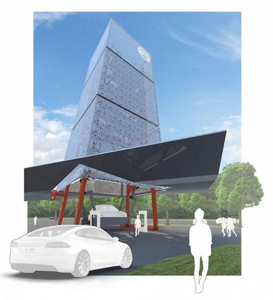 隨著電動(dòng)汽車越來(lái)越多,常規(guī)的電動(dòng)汽車充電站肯定會(huì)越來(lái)越多,所以,Ennead 認(rèn)為在未來(lái)我們可以充分考慮一下利用路邊的建筑,現(xiàn)在,他們還將這種“充電塔樓”的概念設(shè)計(jì)帶到我國(guó)上海來(lái)。