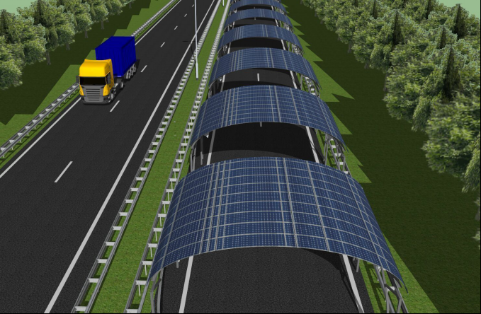 用太陽(yáng)能板代替?zhèn)鹘y(tǒng)瀝青來(lái)建造太陽(yáng)能公路的設(shè)想,最早由美國(guó)的一對(duì)科學(xué)家夫婦在2006年提出。2009年,在美國(guó)聯(lián)邦公路局的資金支持下,他們研制出由相互咬合的六邊形鋼化玻璃面板組成的太陽(yáng)能路面材料。玻璃面板中嵌有光伏電池板,能利用太陽(yáng)能發(fā)電。