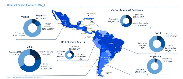 價格下降疊加需求增加,使智利、墨西哥和巴西形成了GW級的規(guī)劃。