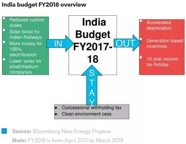 中國儲能網(wǎng)訊:2月1日,印度財政部長對外公布了該國2018財年(2017年4月到2018年3月)的國家財政預(yù)算。在預(yù)算演說中,財政部長雖未過多直接談?wù)撚嘘P(guān)清潔能源的內(nèi)容,但我們可從其言語之間得出不少結(jié)論: