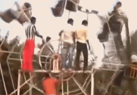 由于電力缺乏,印度民眾玩起了手動(dòng)摩天輪