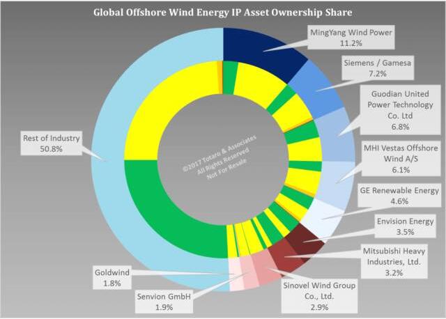 中國儲能網(wǎng)訊:根據(jù)咨詢機構(gòu)Totaro & Associates的統(tǒng)計,在過去的7年里,海上風電的創(chuàng)新和相應的專利申請存在顯著的上升趨勢。對降低風場固定資產(chǎn)投資(CapEx)和運營投資(OpEx)方面創(chuàng)新的急切關注促進了海上基礎、建設技術(shù)、(建設和運維)船,以及服務商業(yè)模式。