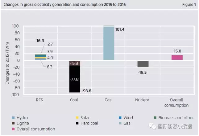 從碳排放的角度看,由于天然氣發(fā)電取代了部分煤電,2016年歐盟電力行業(yè)碳排放從2015年的10.66億噸下降至10.18億噸,下降幅度為4.5%。