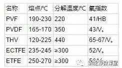 各個氟塑料薄膜對水汽的阻隔能力不同,其中以ECTFE為最優(yōu)。使用同樣厚度為100μm的薄膜,在氣溫40℃和濕度95%的條件下,PVF每天每平米的水汽透過率超過10~20g,PVDF為2g左右,而常用的PET不超過10g。據(jù)多數(shù)供應(yīng)商提供的數(shù)據(jù),采用氟塑料薄膜和PET薄膜復(fù)合成的背板,其水汽阻隔性能小于2g。表1為各種氟材料的特性。